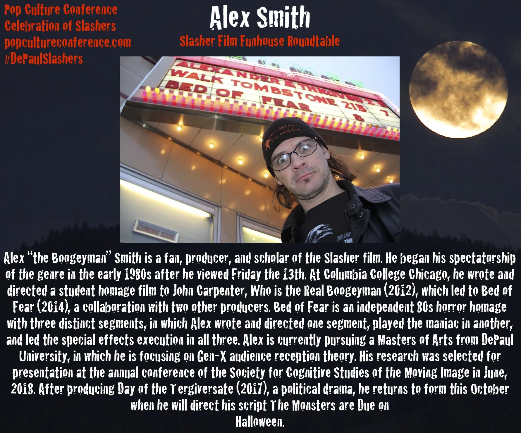 In honor of the 40th anniversary of the release of John Carpenter's Halloween, DePaul Pop Culture Conference presented A Celebration of Slashers in 2018.